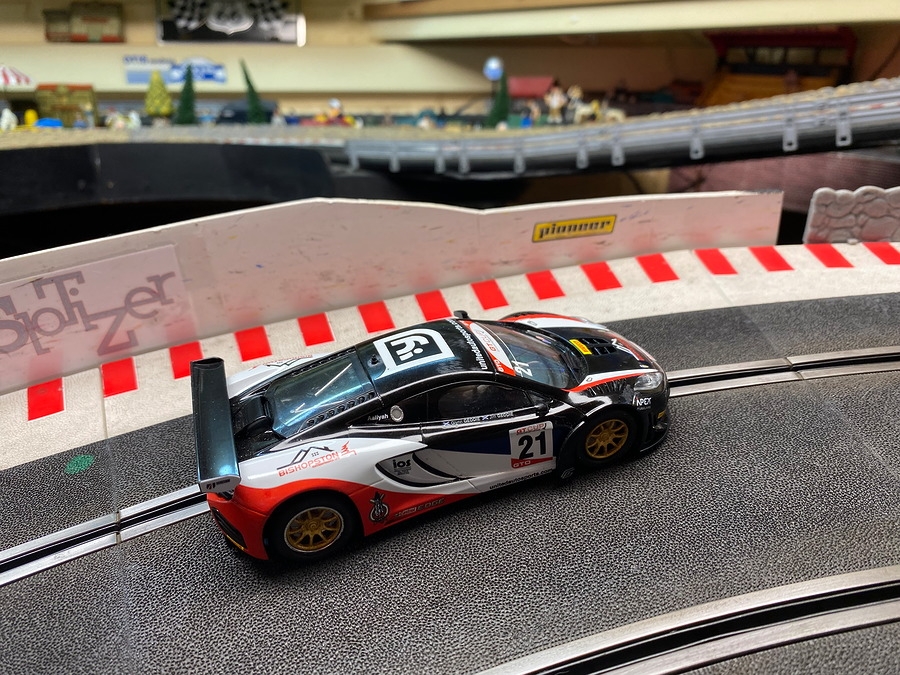 les copains de Montesson sont passés faire des chronos, toujours la même recette : poignée slot-it bloquée, 15 tours, nettoyage des pneus si besoin, passage des voitures dans l'ordre inverse du classement, Boxer sur la rouge et Fredo sur la verte. les esprit taquins noteront que Boxer m'a chipé le meilleur temps absolu... il n'y a plus de respect