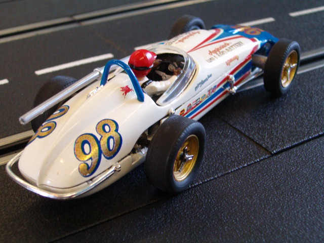 je suis parti d'une tres vieille maquette AMT au 1/32.le moteur est un nc1 sur un support proslot,les jantes de cobra ninco et la planche de decals est de indycal