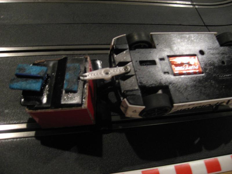 j'ai collé des bouts d'éponge et imbibé de produit ,puis quelques tours de piste sur les deux voies ,puis un petit coup de chiffon .