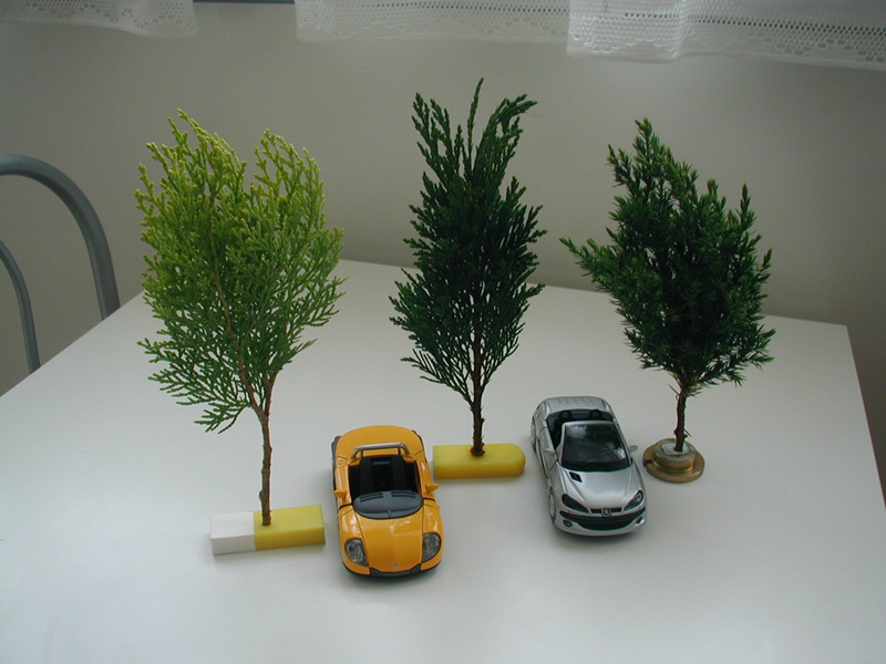 En attendant les derniers aménagements de ma piste, plutôt que de me ronger les doigts d'impatience, je me suis attaqué à la fabrication d'arbres et autres arbustes.