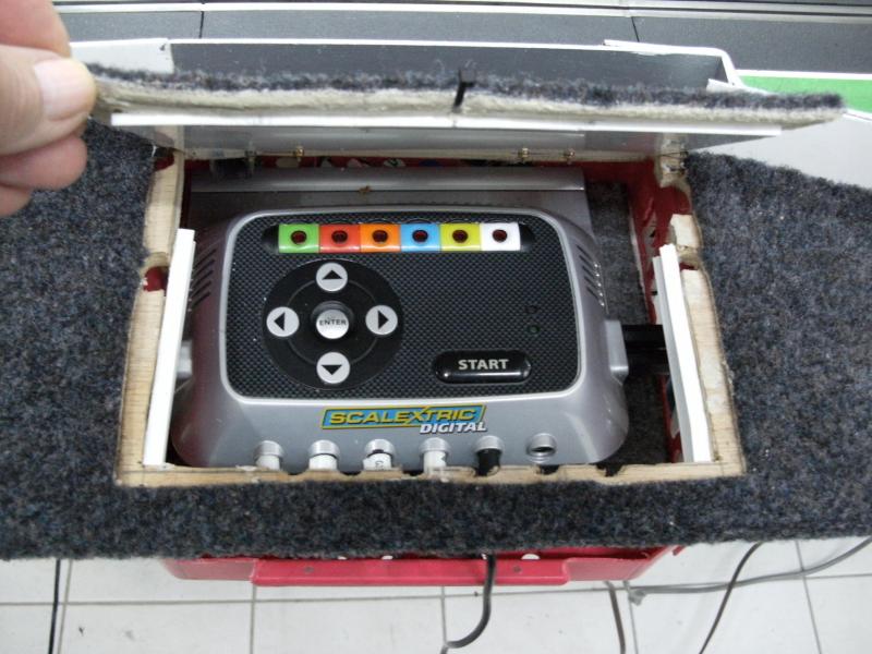 chez moi elle a été séparée du rail, qui est installé lui même a l'entrée du pit stop,
