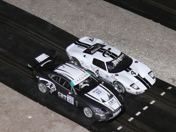 Aujourd'hui, j'ai investi dans deux voitures Scalextric, une Ford GT Gran Turismo et une Jaguar XKR Racing Team.