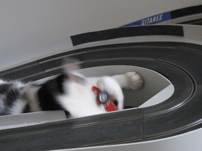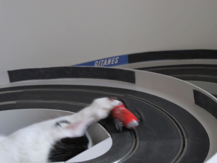 Voila mon pire partenaire... il comprend rien au slot et ne respecte pas les voitures...
