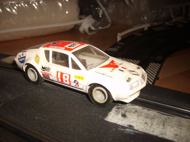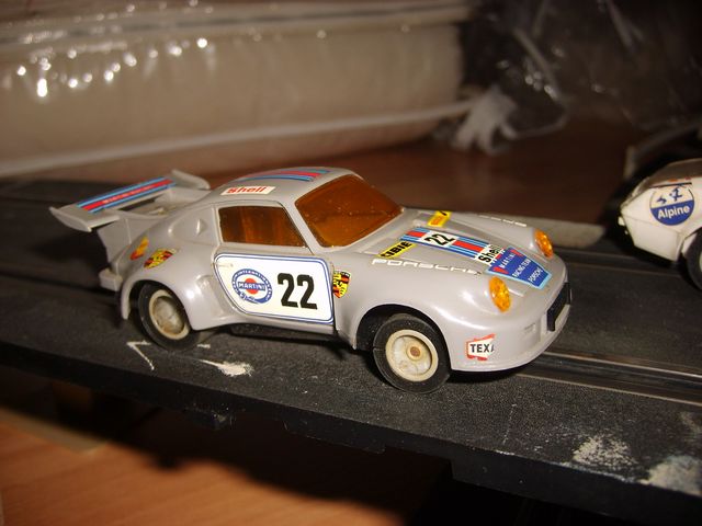 Les voitures sont une Porsches Carrera Turbo et une Renault Alpine A310. L'une des poignées est de marque Tyco (sans doute venue remplacer une qui ne fonctionnait plus). Il y a également deux F1 en bien mauvais état: une Ferrari et une Gitane.