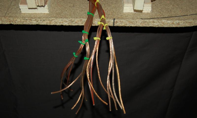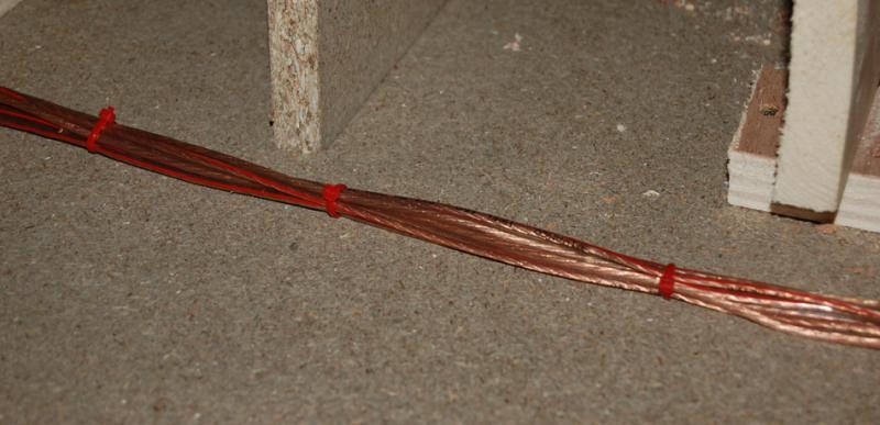 Maintenant je vais attaquer le "pré-câblage" des futurs éclairages de piste et du décors. Par contre, quel câble dois-je plutôt utiliser selon vous pour le câblage de l'éclairage ? Le gros (le même que pour mes repiquages de jus) ou le plus fin (du cable pour hi-fi) ?