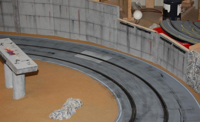 Entre temps, la piste a été fixée, aplanie, les trous et vis mastiqués, ... bref, pas mal de travail réalisé ... Les images valant mieux que des mots :