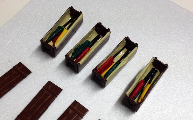 3 - je chauffe lesdits drapeaux avec un briquet (pas trop pour ne pas les cramer, mais suffisamment pour pouvoir les déformer) pour leur donner la forme qu’ils auraient lorsqu’ils flottent au vent
