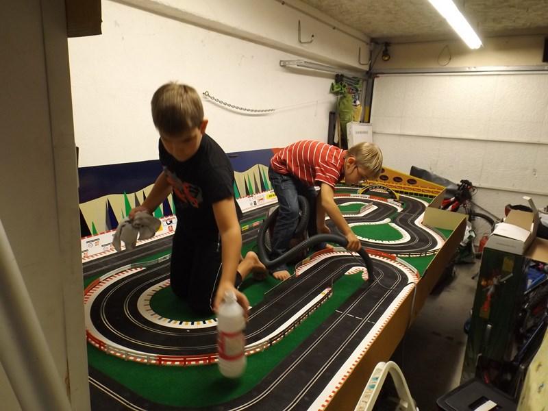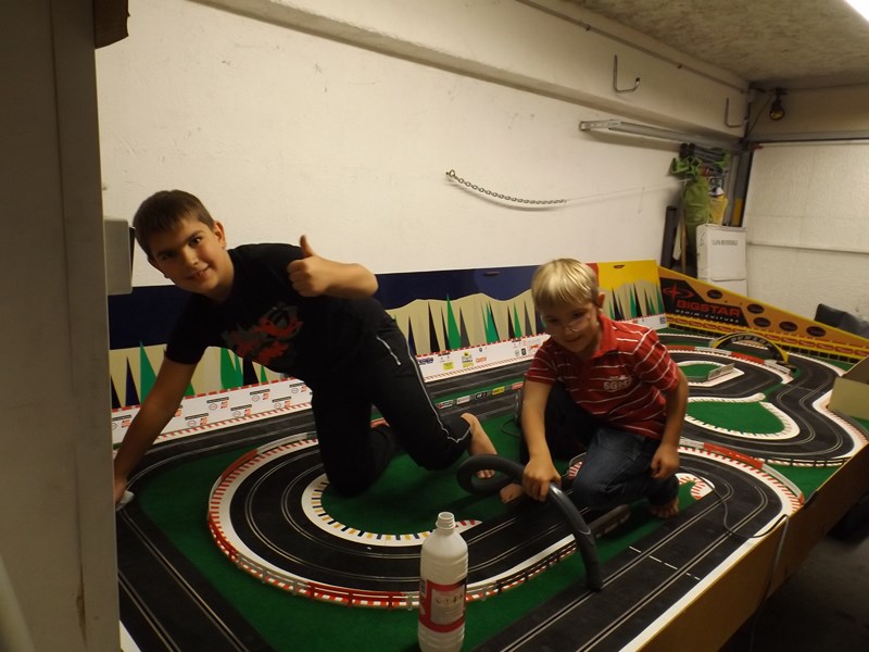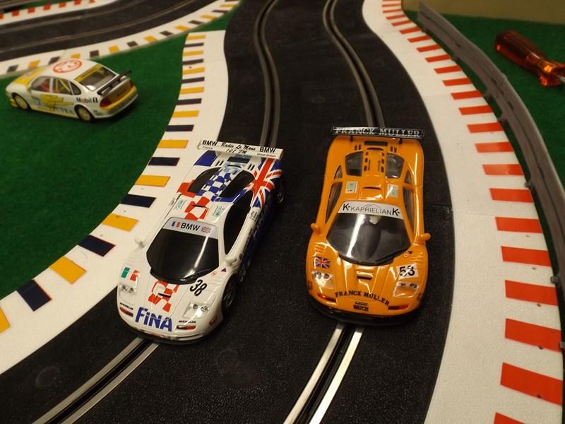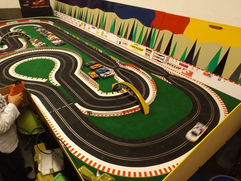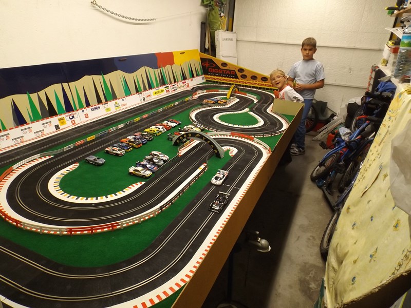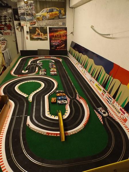 fred a écrit :FRED,mon problème est que ne voulant pas condamner mon garage afin de l'utiliser pour sa vocation première,j'ai du installer la table sur des charnières qui me permettent de relever l'ensemble vers le mur,et de ce fait les rails ont dus etre fixés sur la table.Ne serais-ce que pour en augmenter le développé,j'aurai aimé y mettre 1 ou 2 ponts mais je suis gèné par une sorte de caisson(visible sur la 1er photo).Maintenant depuis que je surf sur les sites,il me viens pleins d'idées mais le circuit etant en place je vais l'exploiter durant quelques années(pas de trops4m par 1,6m c'est la dimension de ma table actuelle. Comme je roule aussi sur du Ninco, si tu es en manque d'idées de tracés je peux t'en passer quelques uns qui trainent dans mes cartons.