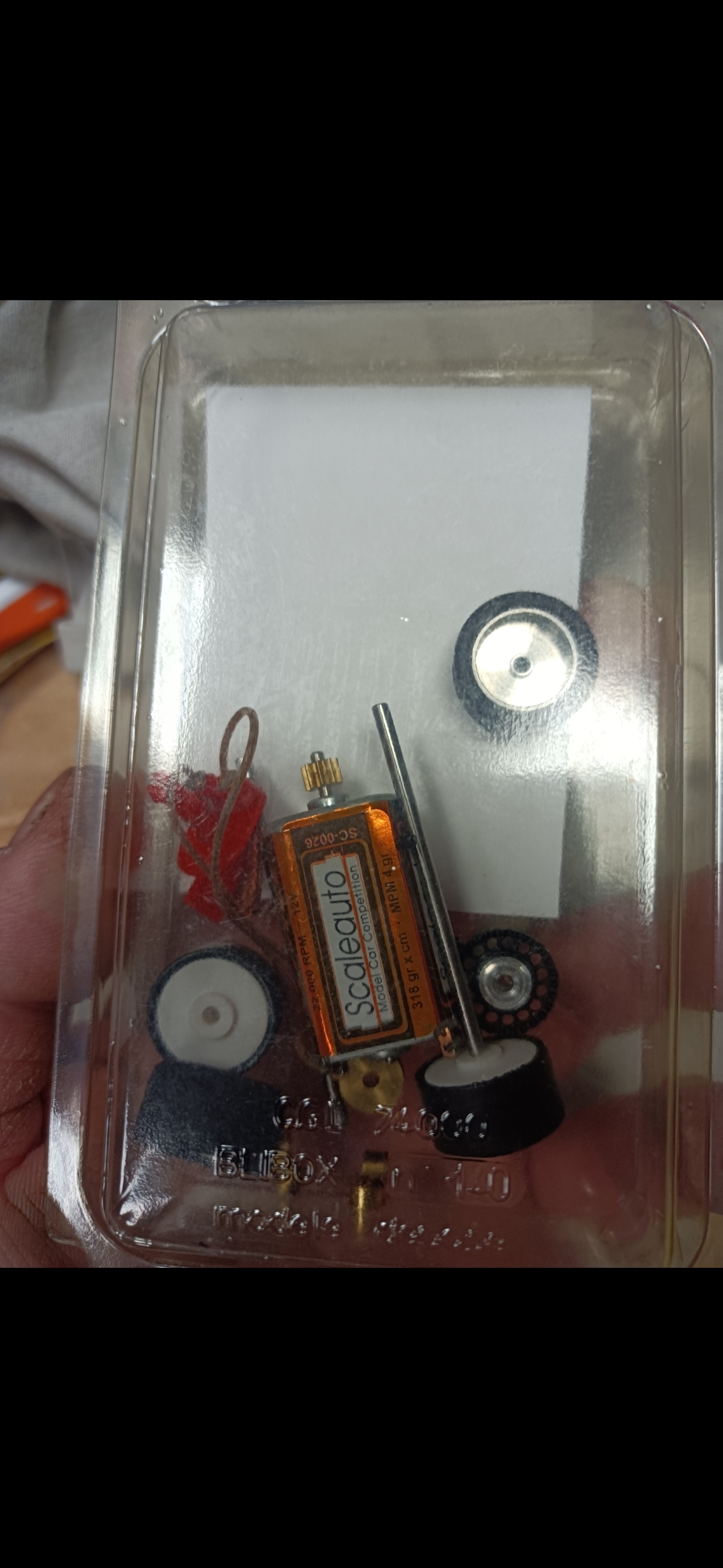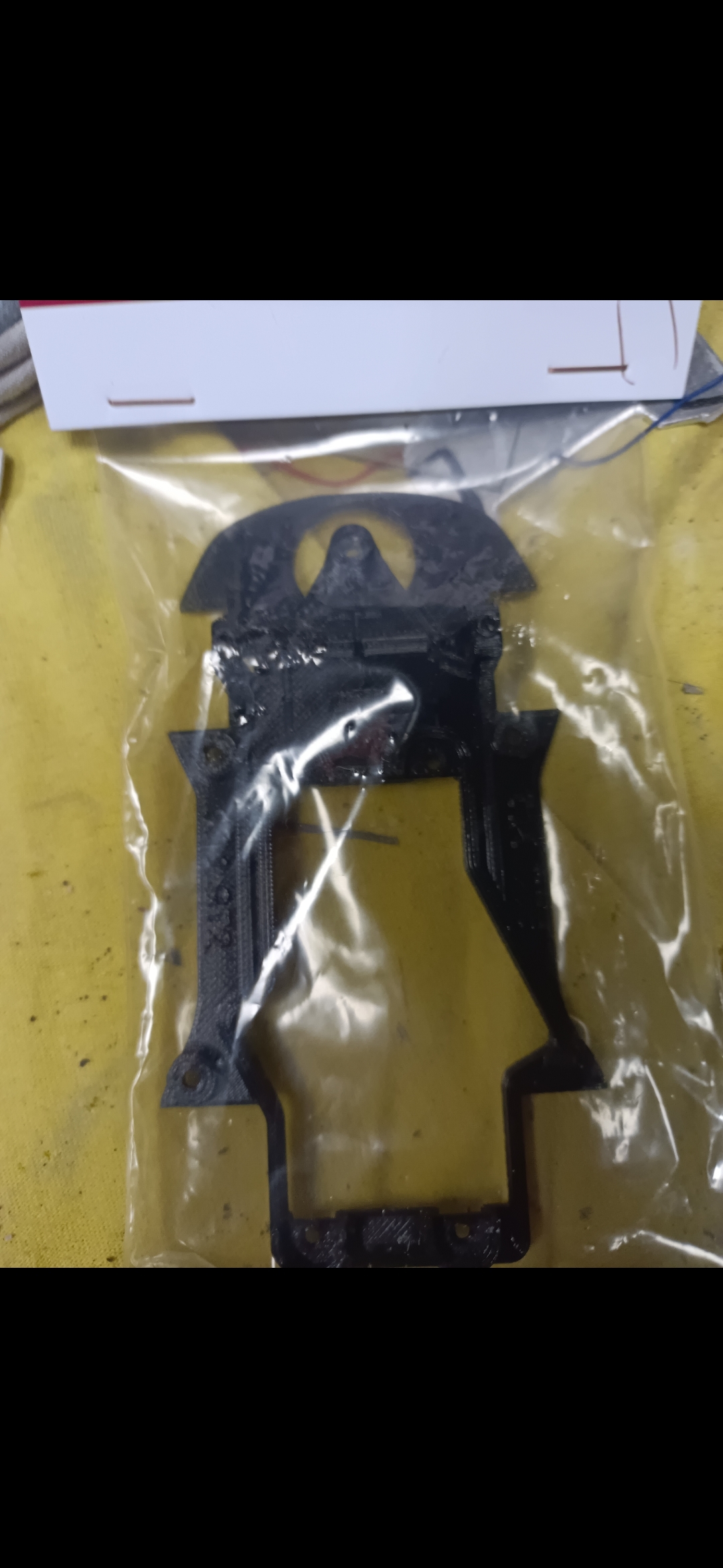 Retour a la maison , déballage... ???? Pas de supports moteur ni d inserts alors que bien présents sur les diverses photos du kit sur hobby classic... Après dans le listing c est écrit en espagnol et j suis pas bon et connais pas les termes techniques en espagnol. Donc mauvaise surprise ... Heureusement j ai un peu de pièces , pendant le rodage moteur, je prends le dernier support moteur long slot it que j ai ... Fais chier va falloir en racheter ... J ai d ailleurs du le retailler pour qu il passe au niveau de la couronne , ça passait pas avec leur châssis ...