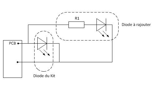 Si tu veux ajouter des LED standard en // pour pouvoir bénéficier du condensateur, il faudra rajouter une résistance en série avec la LED standard.
