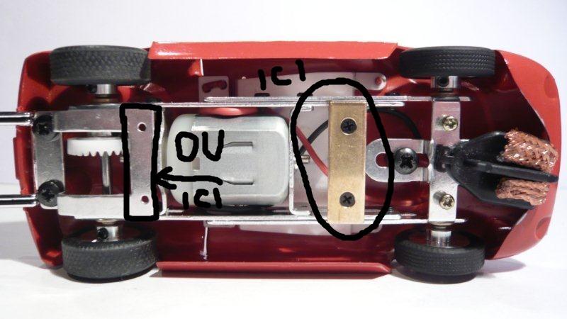 - pour le bruit, un point de cyano entre les palliers arrière et le chassis et vissage du moteur sur la traverse (coté opposé au charbons)