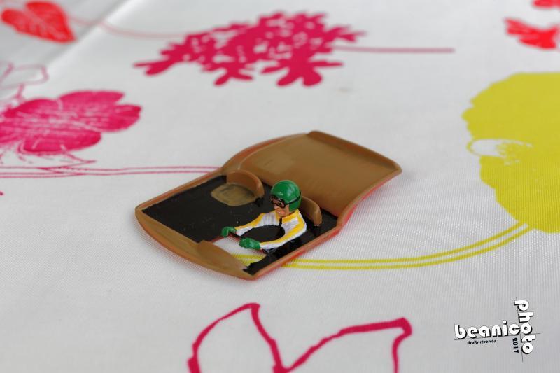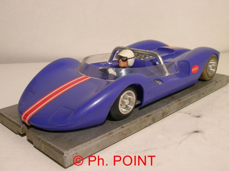 En 1967, c'était plutôt une plaque à éléments pliés-relevés. Les carrosseries (genre rhodoîd, peintes souvent en teintes métallisées), toutes en style Can-Am, étaient fixées avec des barrettes-épingles latérales amovibles.