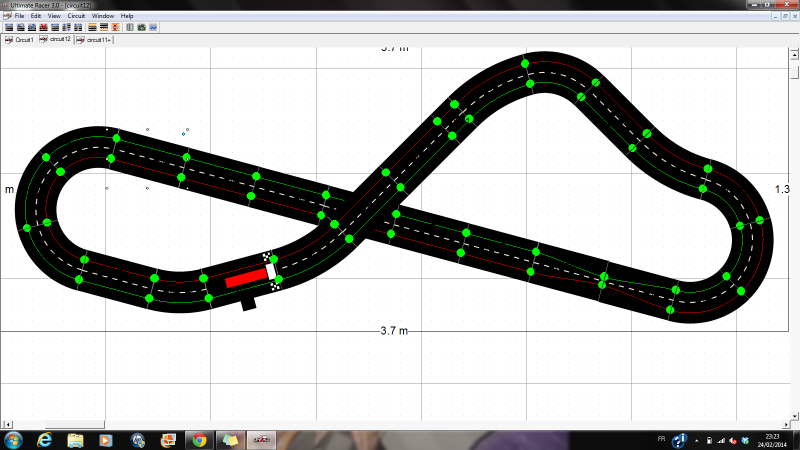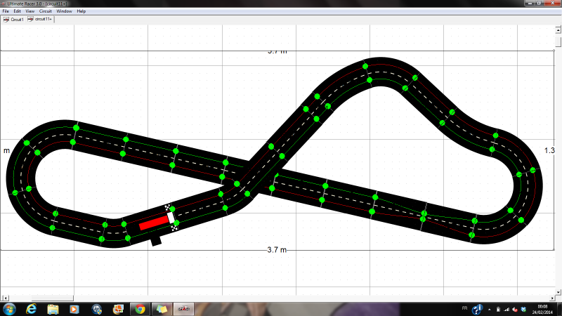 J'hésite entre 2 tracés, sachant que mon plateau fera 3,70m x 1,3m et que je suis en carrera pas évident de faire un beau tracé.