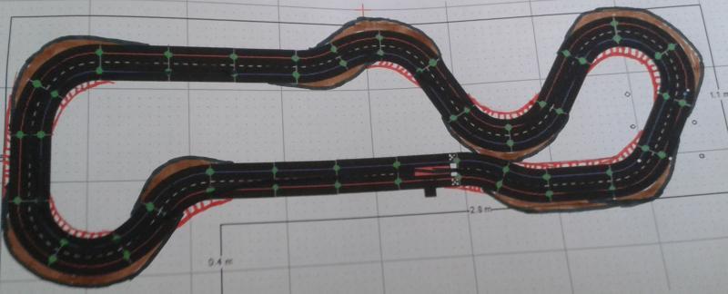 salut c'est pas mal , il faut voir dans quel sens tu roule(car si tu respecte ton plan dans certaine sortie de virage tes voitures vont désloter) et surtout il y a une partie la piste ce touche (en bas a droite )