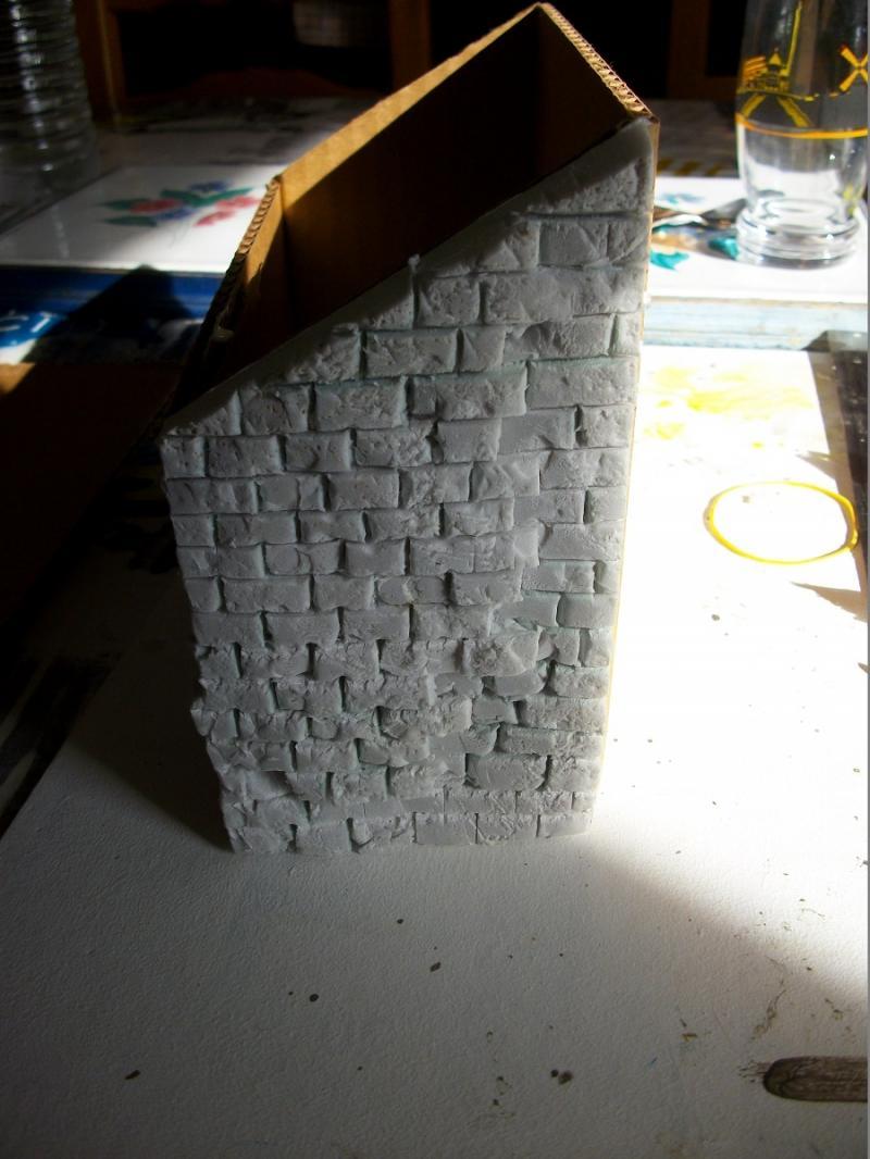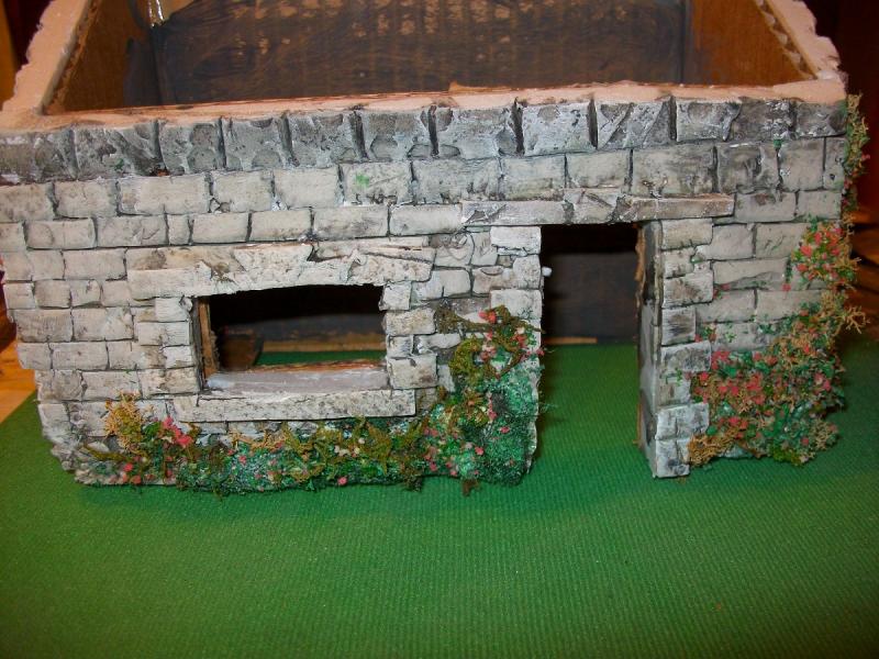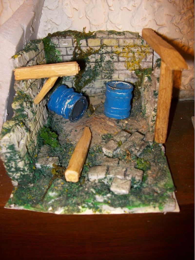 ' l intérieur ' de la ruine avec de vieux tonneau fais en papier ( à refaire , la peinture n a pas accroché )