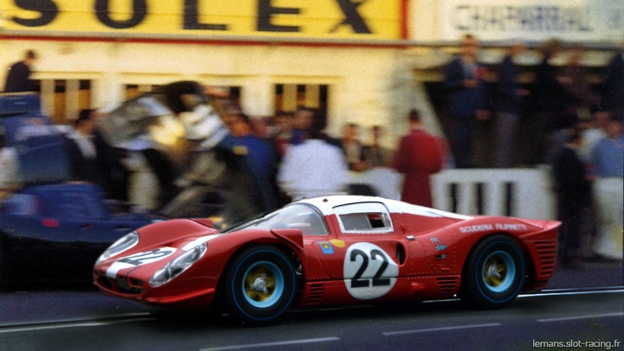 Toute l'histoire est là : https://lemans.slot-racing.fr/le-mans-1967/ferrari-412p-22-scalextric.html