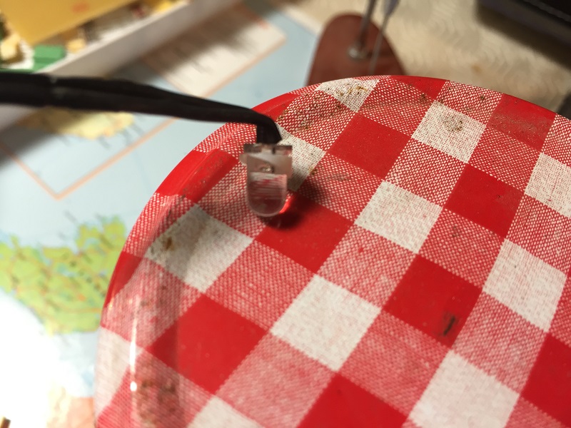 Dérivation de l'alimentation du portique numérique, en effet, une des led IR tombe juste dessus.