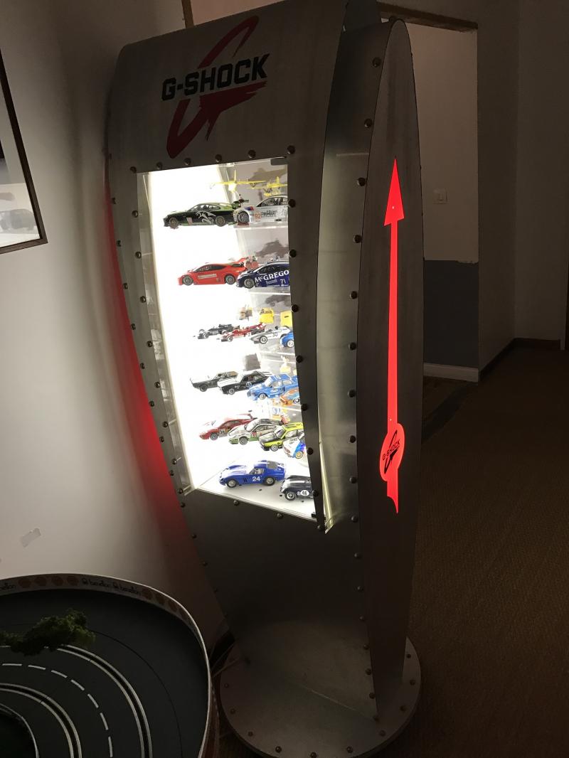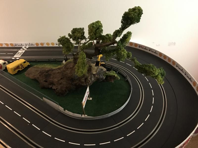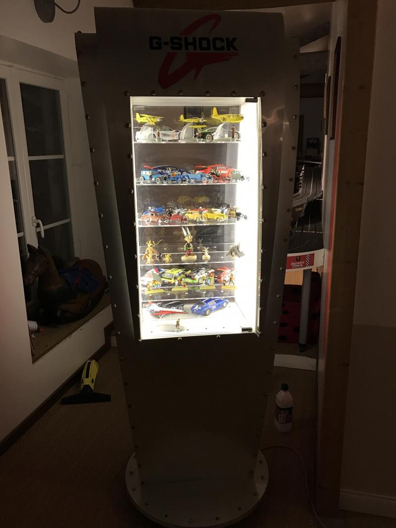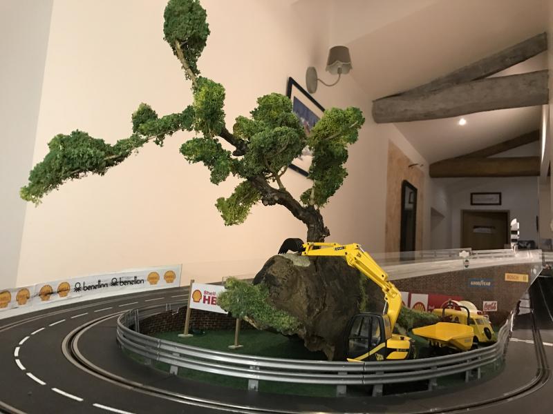 Mon anniversaire avec un peu d'avance: une vitrine stylée offert et chinée par ma chérie et un arbre confectionné par ma chérie aussi. Bon l'arbre est un peu monumental pour l'échelle 1/32 mais je ne pouvais faire autrement que l'intégrer sur la piste...