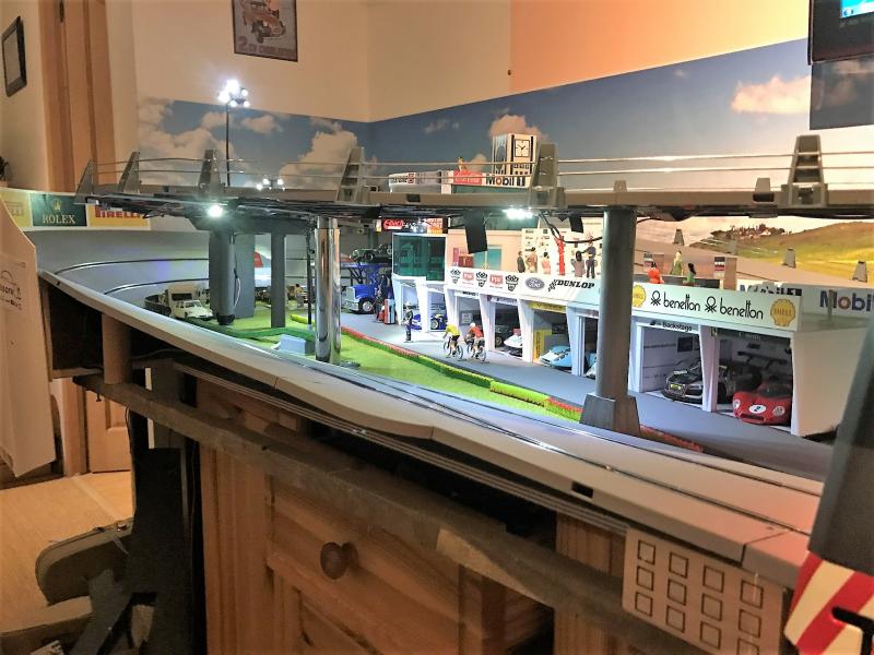 La piste est de nouveau opérationnel. Toutes les bordures sont replacées, les ponts fixés, on va pouvoir de nouveau faire des courses endiablées avec le fiston. Il me reste maintenant uniquement des finitions de décors (lumières dans les stands, quelques collages, etc..)