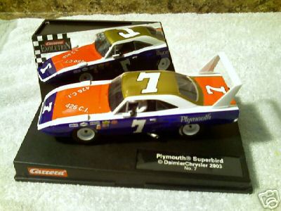 bref, j'ai de tout comme marque et meme la pire des mes voitures (une Carrera Ford Mustang GT500) a pu rouler tres correctement apres avoir sureleve le guide et pose des pneu 'slim'. La Simca 1000 de Revell est tres fun aussi... en 9 volts... pas plus