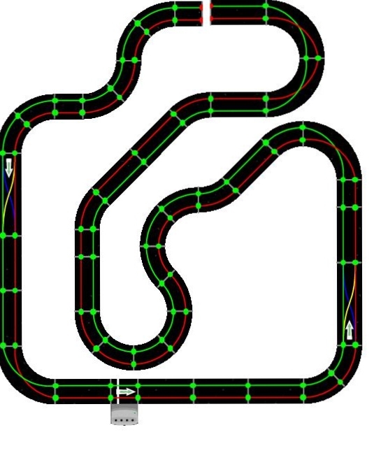 Donc tous les virages tournent dans le même sens et le pont à l'envers multiplie la différence de longueur des voies par 2.