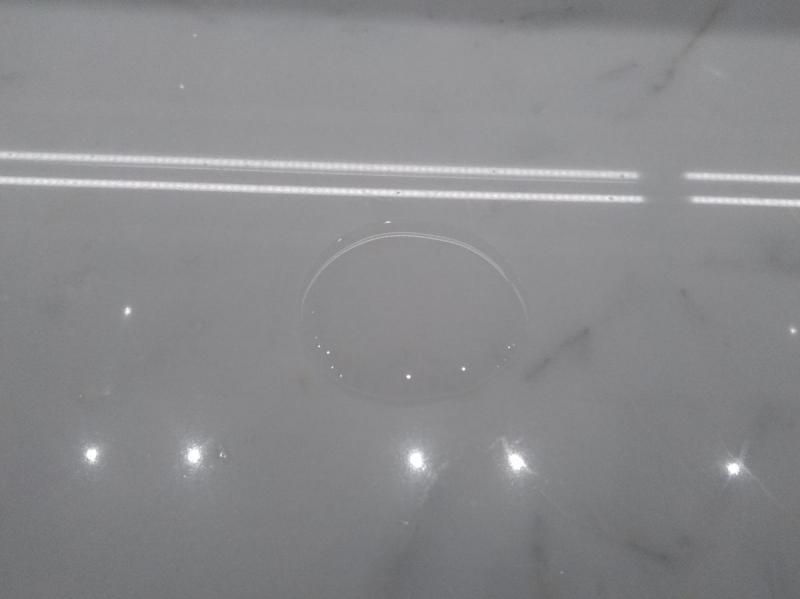Mais rien n'y fait, notre illustre génie de la construction navale est convaincu. Je suis donc allé dans sa salle de bain et j'ai versé par terre un dé à coudre d'eau. Et devinez quoi ? L'eau forme un petit rond sur place.