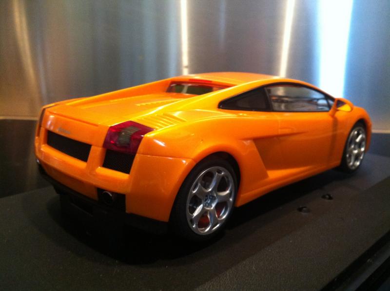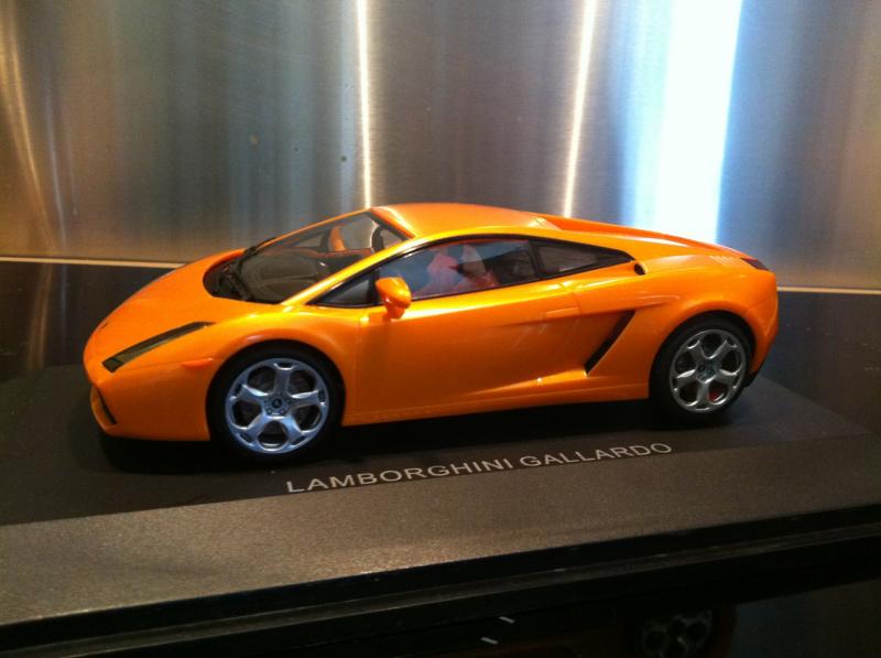 voici mes deux Gallardo Autoart à l'echelle 1/24.Ce sont des quatre roues motrice par arbre de transmission, elles ont les feux avant et arriere et sont magnifiquement détaillées.