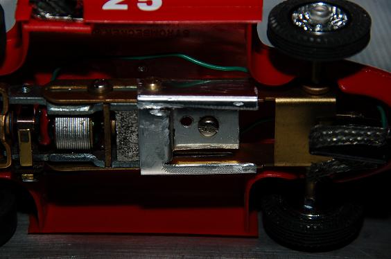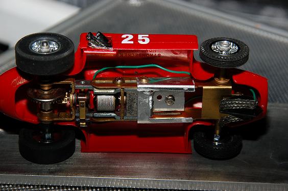 donc mise en peinture de la carrosserie avec un rouge ferrari de chez tamya et assemblage des partie inférieur du chassis, montage et assemblage du chassis métallique de la motorisation avec creation d'un support de carrosserie en aluminium maison car seul pieces manquante au kit