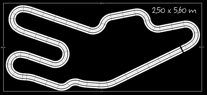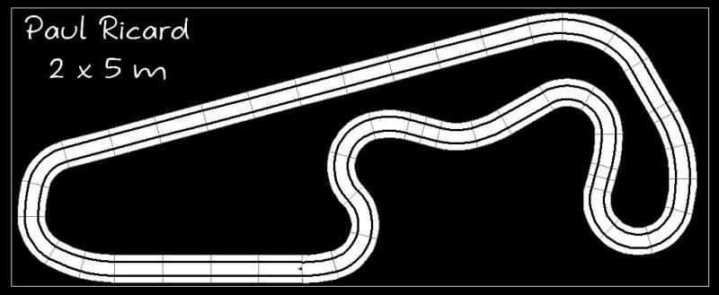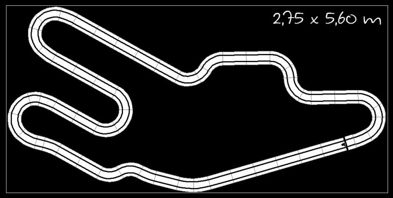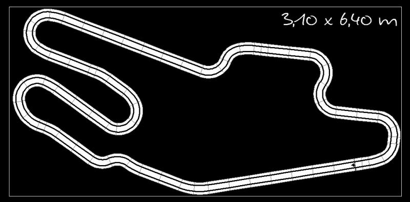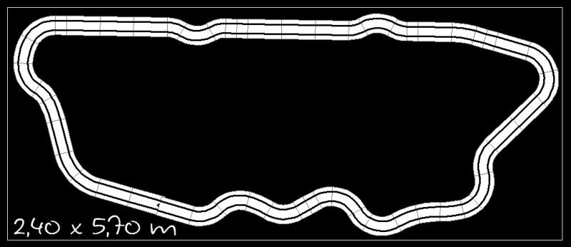 Je pense que si ton local fait environ 3 x 6 m (ce qui est déjà une très belle place) il faudra que les dimensions de ton circuit soient moins importantes. Il faut pouvoir tourner autour, placer les postes de pilotage et penser à la récupération des bolides.