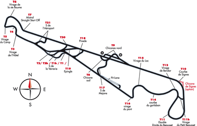 J'ai fait quelques erreurs sur le dénivelé car j'ai travaillé d'aprés des photos et des vidéos en caméra embarqué, mais je n'ai jamais mis les pieds sur ce circuit. Pardonnez moi.