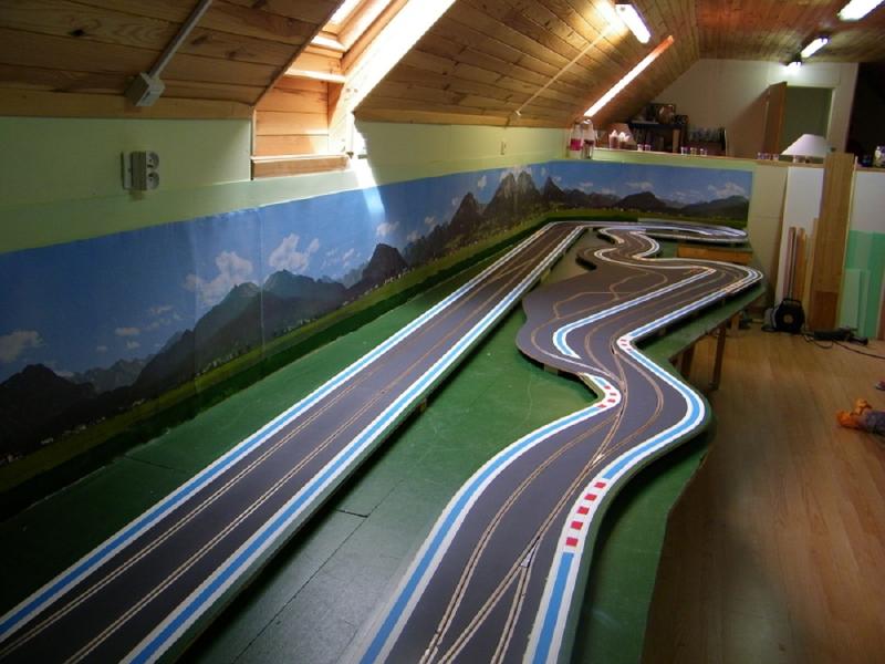 P.S : pour les gars du plastique : la technique la plus fabuleuse du monde à mon avis pour créer du réalisme à un tracé : peindre la piste avec une gouache grise sombre (ben oui de la gouache j'assume !), et petit à petit les voitures vont noircir les zones les plus roulées et les rendre noire. ça donne un rendu bien sympa et c'est bio dégradable.