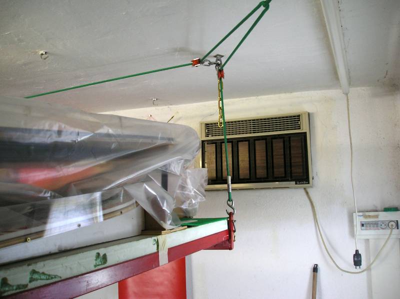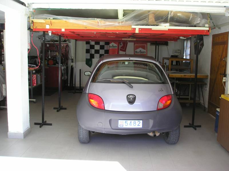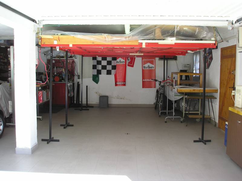 voici ma piste et le système de relevage afin que ma femme puisse mettre sa voiture en-dessous, sinon ... pas de piste!