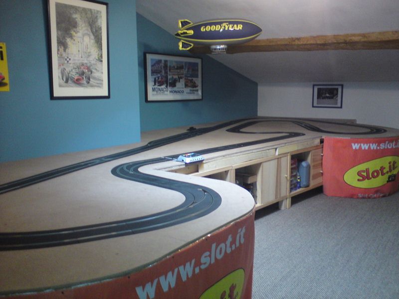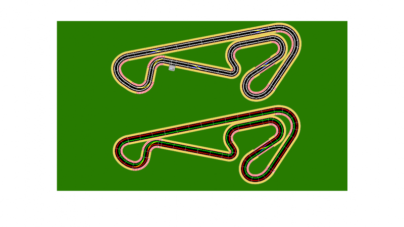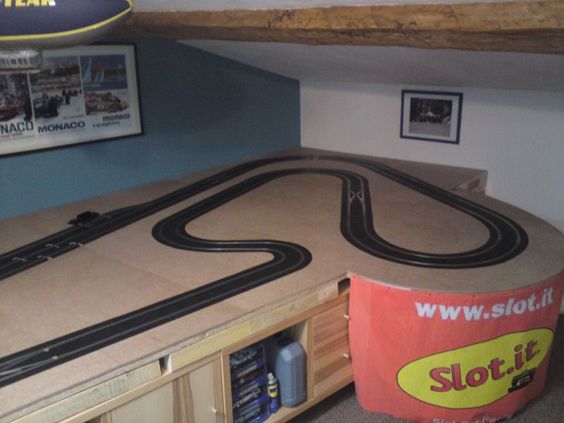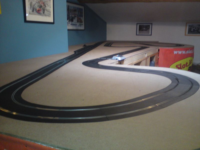 En ce qui concerne la déco, la mise à niveau à débuté sur la partie gauche du tracé, par contre je m'interroge quant à une légère modification de la partie droite car le pont masque le changement de voie en courbe situé au bout de la ligne droite et un freinage trop appuyé entraîne un arrêt des voitures sur les aiguilles.