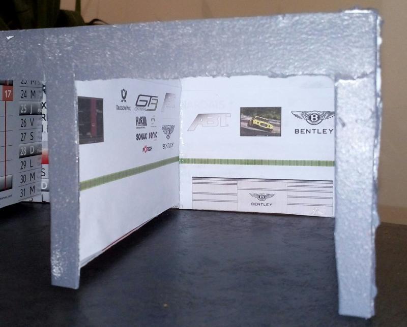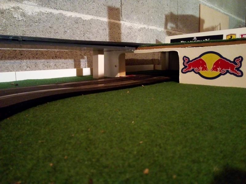 J'ai fait aussi la pose de la moquette sur le dessus du tunnel, mise en place d'un muret assez haut pour que les voitures ne sortent pas du plateau et pour finir déco de cette zone.