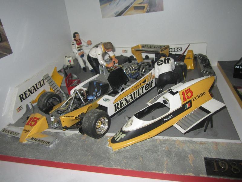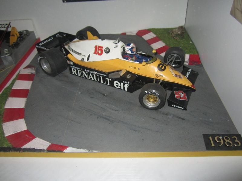 5 Formule 1 au 1/12 (1981, 1983, 1986, 1990, 1993). La RE40 n'existait pas, il s'agit donc d'un scratch, l'aileron est posé à côté, il n'a pas apprécié le voyage en carton. Cette série a été récompensée à MODELEXPO en 1996