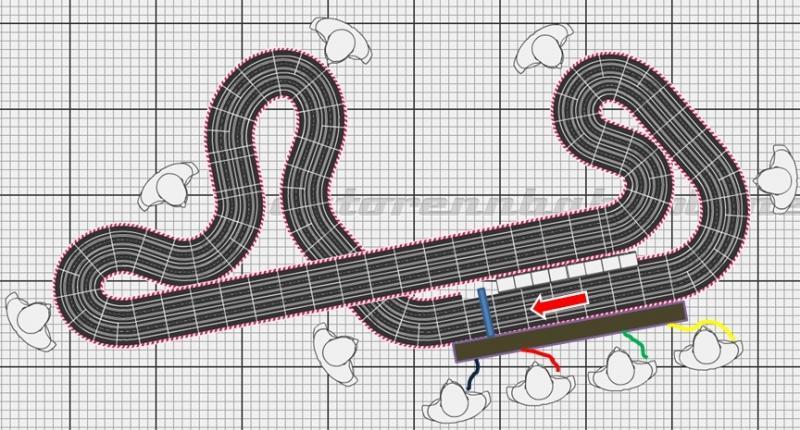 Au cœur de ce projet, il y a le Circuit des P'tits Pilotes. L'idée est simple: mon circuit perso n'étant qu'un 2 voies, et l'espace dans ma slot room étant faible pour accueillir un nombre grandissant de P'tits Pilotes, je me suis dit qu'avec un 4 voies et plus d'espace autour ils rouleraient plus ... et encore plus volontiers!