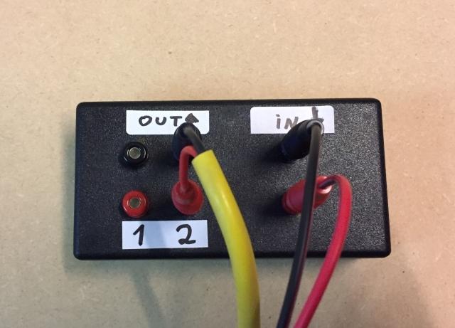 On part donc d'une alimentation (le noir est le négatif et le rouge est le positif), jusqu'à un petit boîtier de ma conception.