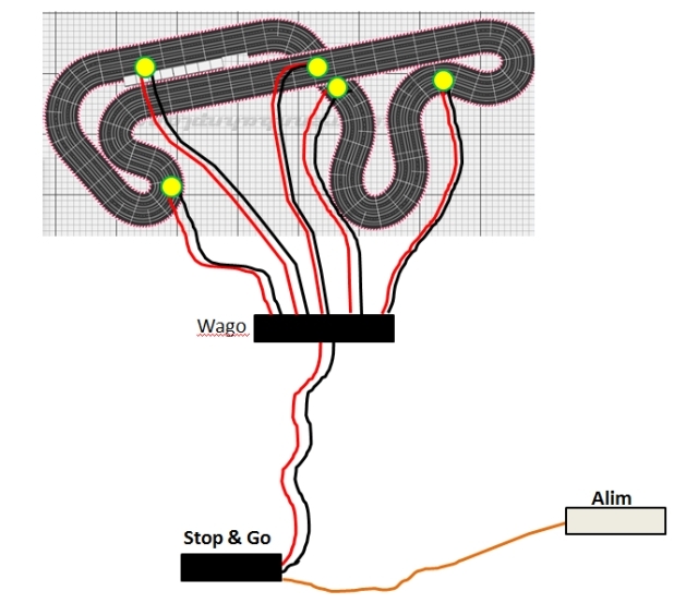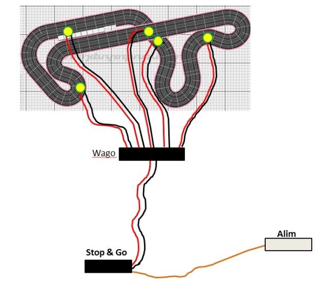 Voici une photo représentant les connexions principales ... avant d'alimenter la piste.