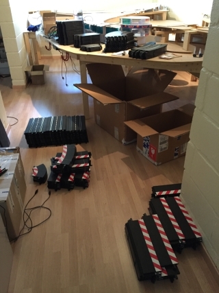 En attendant tout cela, ce circuit sera "mobile", ce qui veut dire qu'il sera monté et démonté plusieurs fois par an. Ce n'est pas l'idéal, mais je n'ai pas mieux à leur proposer pour l'instant (bien entendu, je vais assembler des sous-sections pour ne pas devoir remonter chaque rail à chaque activité!).