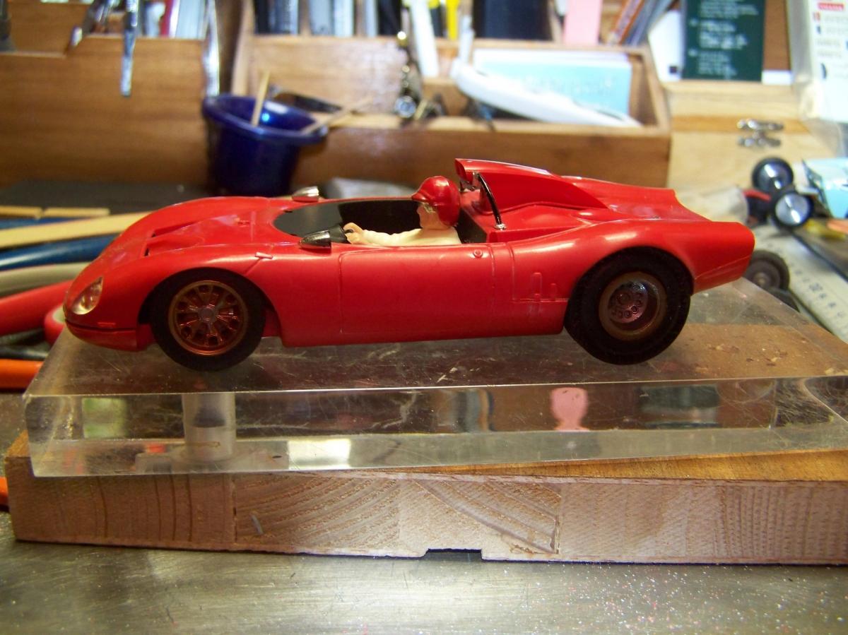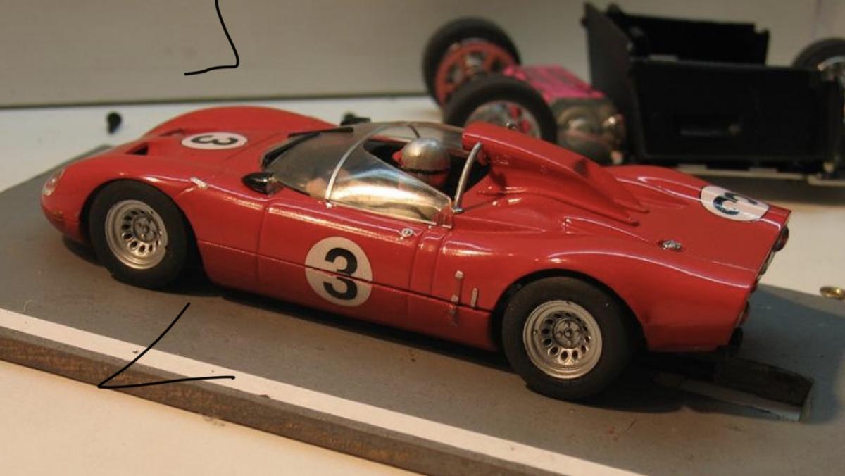 Deuxième essais, cette fois l'auto stop net à la première jonction entre les rails. le guide est trop large. Pascal, présent et Hervé le boss du club me prêtent une lime et une cale à poncer avec du gros papier de Verre. Au bout de 15 minutes de ponçage (le plastique allemand c'est du solide, ha si seulement il avait construit le Bismarck avec...) on remonte et on pose enfin sur la piste. Cette fois enfin c'est parti... doucement, mais alors très doucement, si Pascal est en train de boucler des tours en 7"8, je saute de joie lorsque je descends sous les 12 seconde.