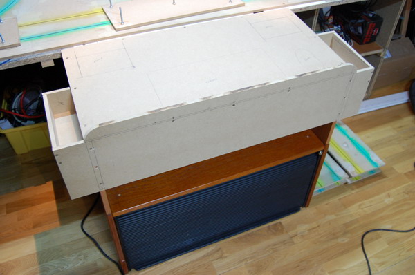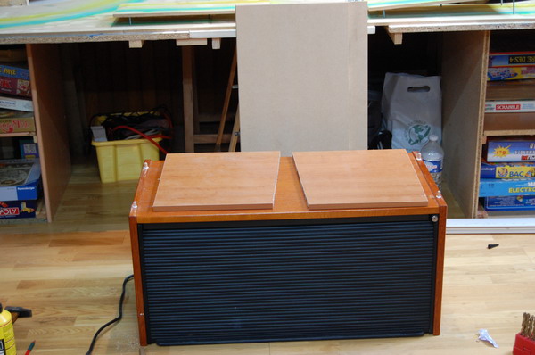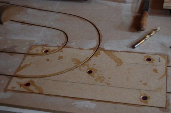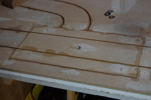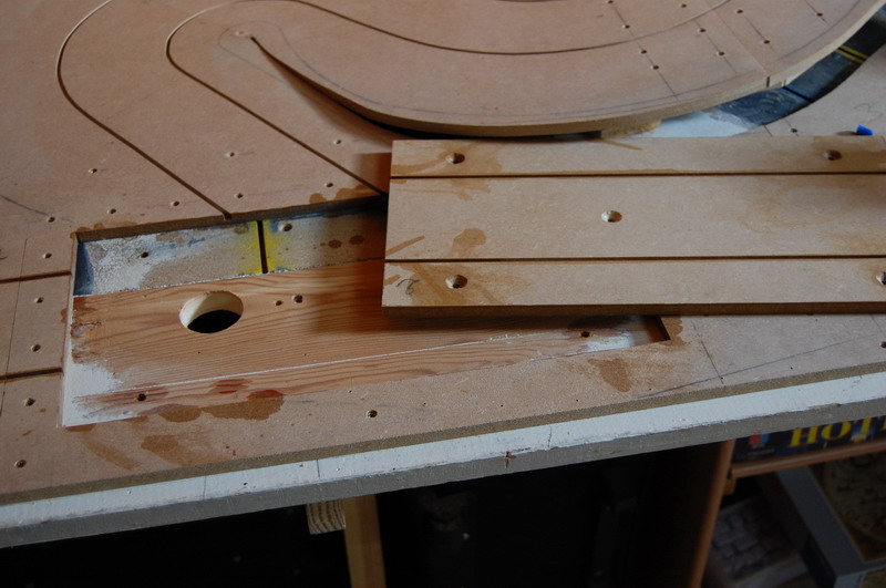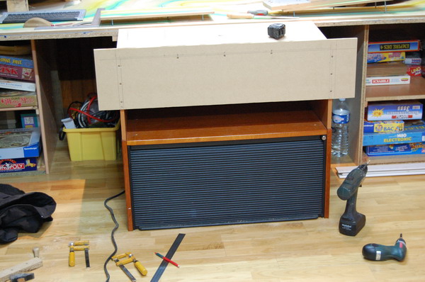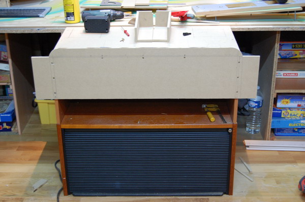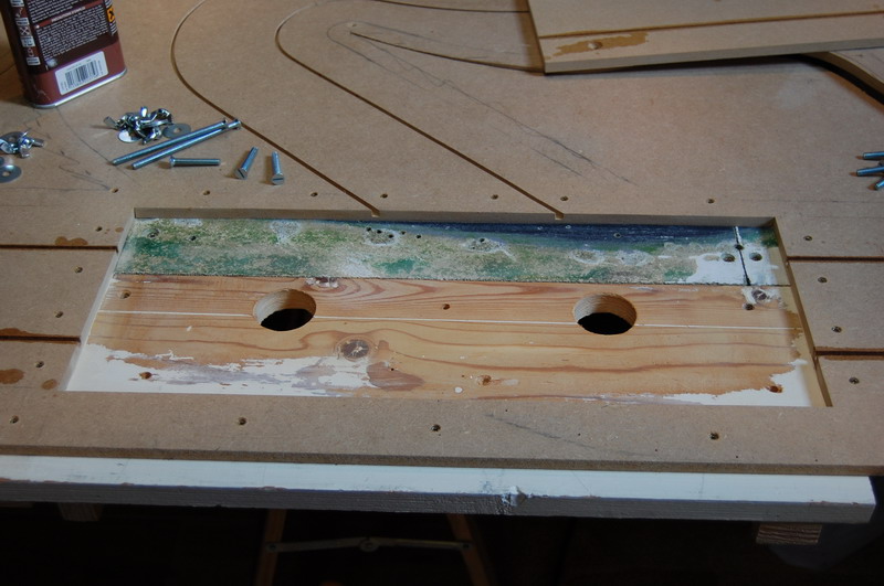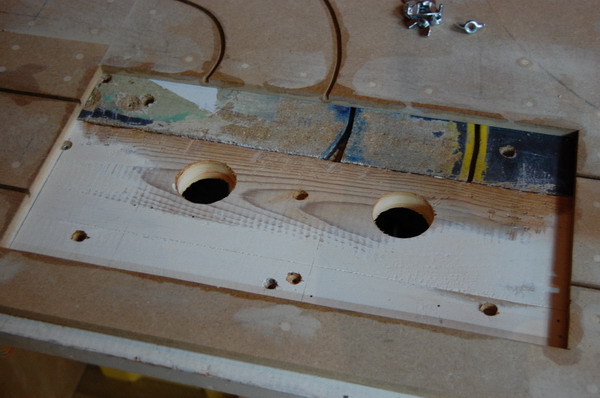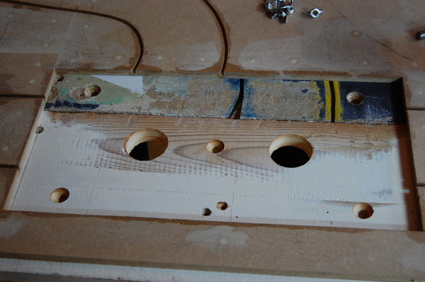 Puis j'ai percé 2 gros trous dans le plateau au niveau de chaque module pour pouvoir dégager les modules en poussant par dessous