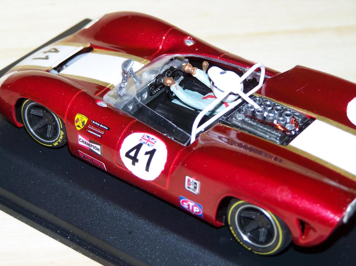 Oui mais tous ça, maintenant, c'est fini. Avec un virage à 180°, nous avons fait volte-face pour travailler sur des machines rutilantes capable de gagner une course, telle que la jolie Lola ci-dessous.