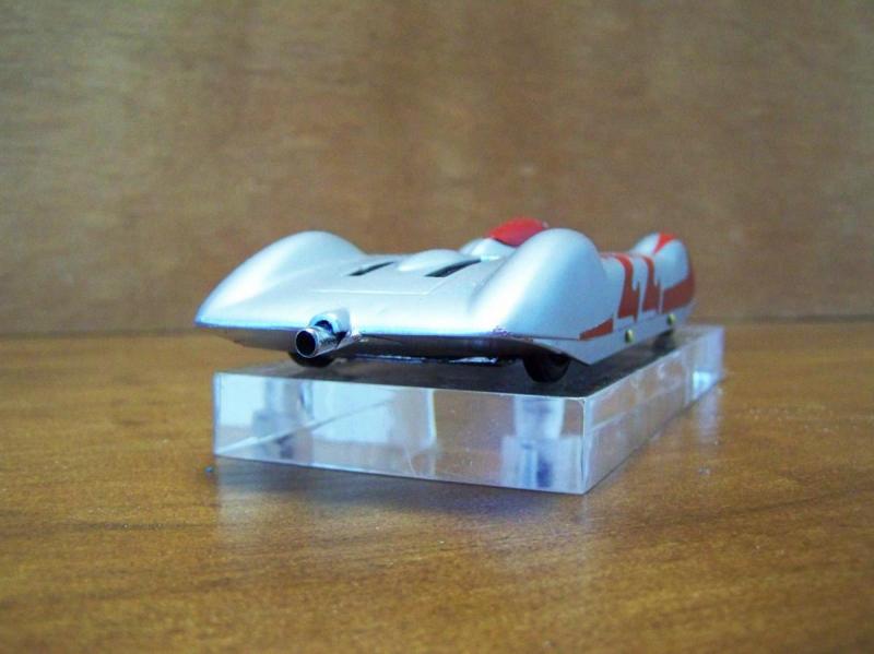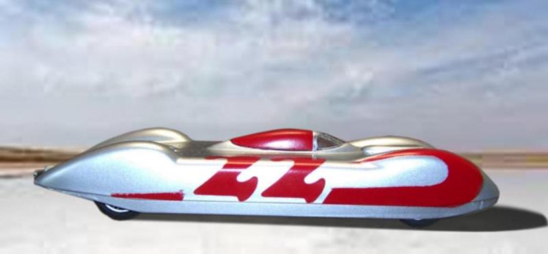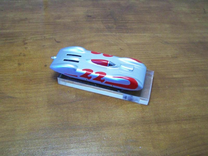 Bref en ce qui concerne la streamliner qui fait l'objet de ce sujet, disons pour être honnêtes que la voiture est plus à sa place dans une vitrine, que sur une piste. La faute au chassis, bricolé je l'avoue et pas vraiment performant. Le moteur est asthmatique, mais les pneus étroits, les seuls à tenir sous cette carrosserie, ne supporteraient pas beaucoup plus de puissance.