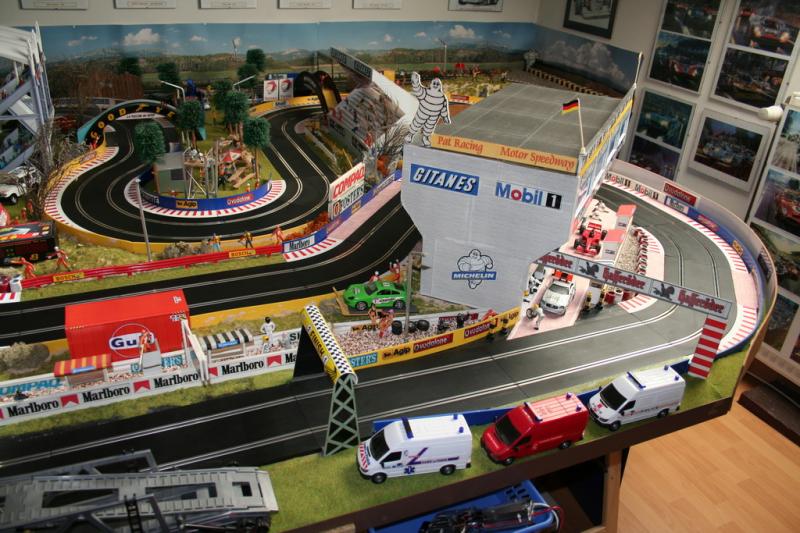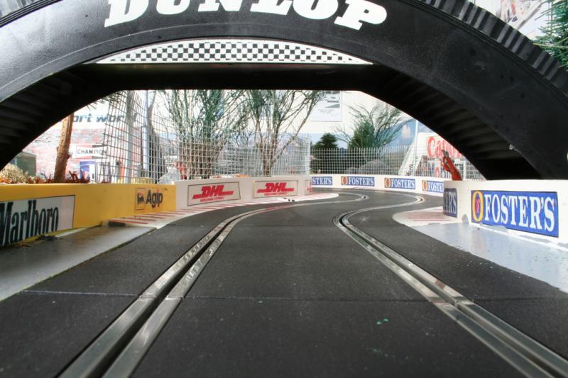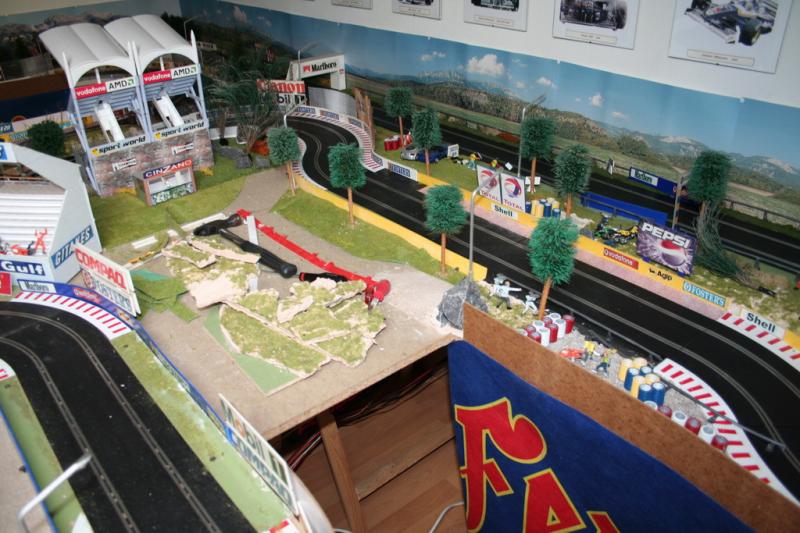 Je vais ensuite peindre la piste avec une peinture grise acrylique mate, et j ai de la sorte assez de place pour mettre les stands correctement plutot que dans un angle