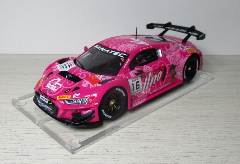 Bon et bien que je ne sois plus trop « voitures modernes » j'ai découvert cette Audi R8 LMS GT3 Evo 2 Carrera dans mon magasin liégeois favori. Une voiture qui roula aux 24h de Francorchamps en 2023. Pilotée par un quatuor des chinois et hongkongais dont on passera les noms pour une fois, en espérant qu'ils ne nous en voudront pas trop pour ça. D'autant plus qu'on n'a pas beaucoup d'infos sur eux, ni sur le « UNO Racing Team » équipe là aussi asiatique (il me semble) qui roulait en « Pro-Am » à l'époque et qui termina la course à la 37e place et cinquième dans leur catégorie.