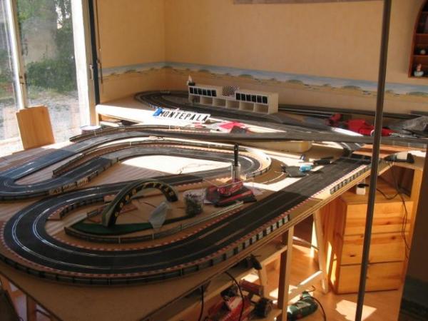 Sur mon autre circuit de rallye celui là ( voir mon site : http://rallyslot.site.voila.fr/ ) le plateau en agglo repose sur des meubles !