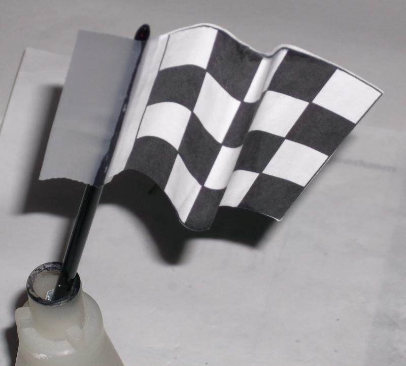 Avec un tissu fin trempé dans un mélange de colle bois + eau auquel est donné la forme désirée avant séchage. Après séchage, coller le papier, dans ce cas le drapeau, sur le tissu.
