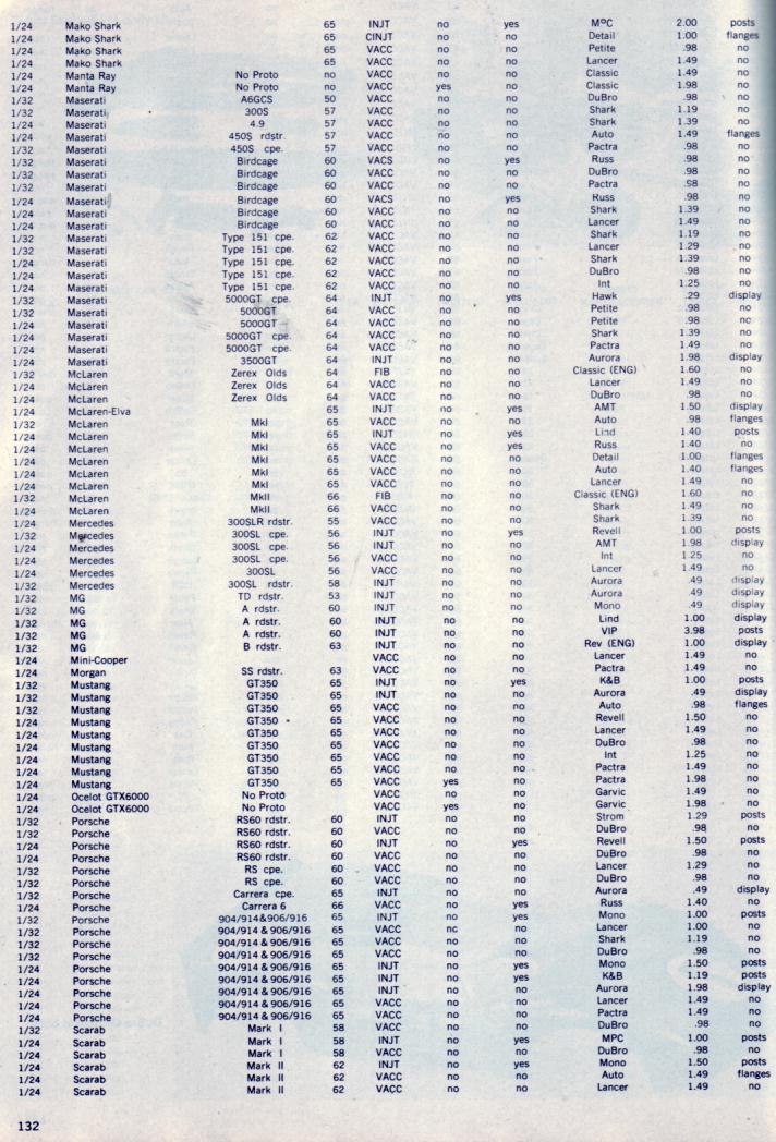 J'ai completement oublié La Maserati 250F (monoplace des années 50 ) qui doit exister egalement au 1/24 et 1/32 (peut etre meme chez Wrenn au 55eme mais ça c'est à toi de chercher)