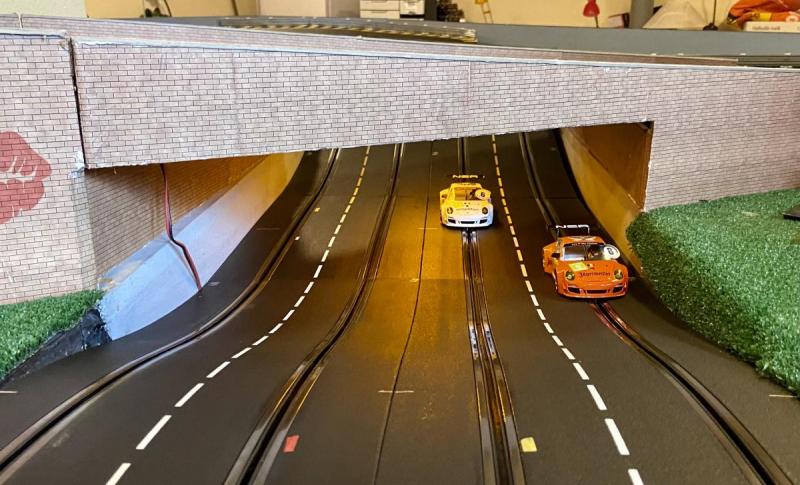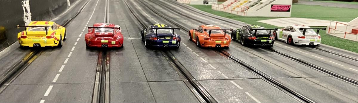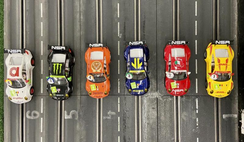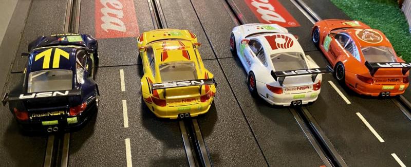 Même principe ici avec quatre courses pour que chacun puisse rouler sur chaque voie. Mais avec des voitures en configuration d'origine, c'est-à-dire en King 21.