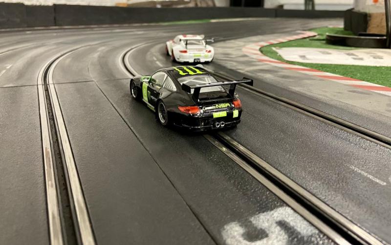 LittleTom et moi étant davantage des sloteurs de circuits à domicile (catégorie « caves et greniers », si vous préférez), nous n'avons (logiquement) jamais pu inquiéter le régional de l'étape, Thomas terminant avec un à huit tours de retard sur christophes selon la voie. J'ai fait de mon mieux pour suivre, me battant (en piste